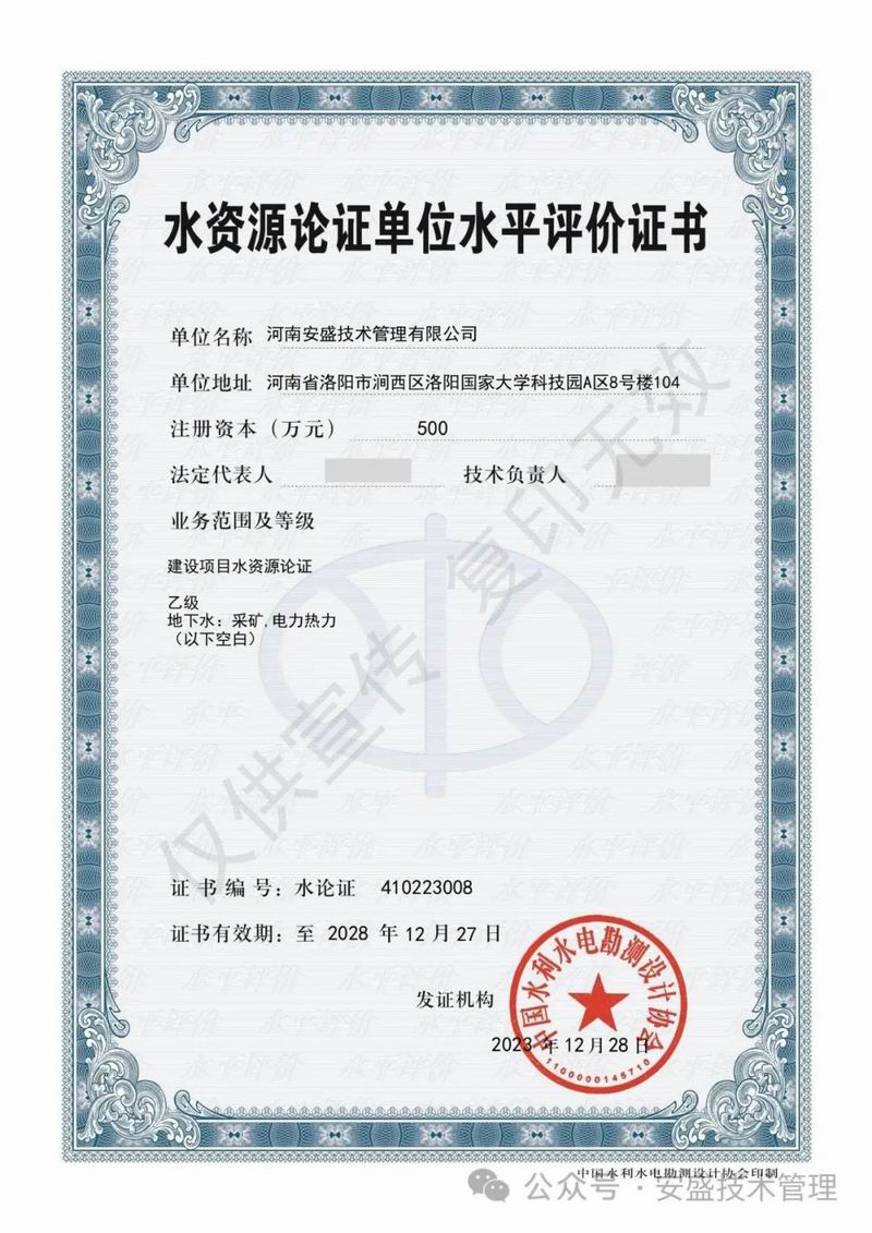 熱烈祝賀我司榮獲水資源論證單位水平評(píng)價(jià)乙級(jí)證書(shū)
