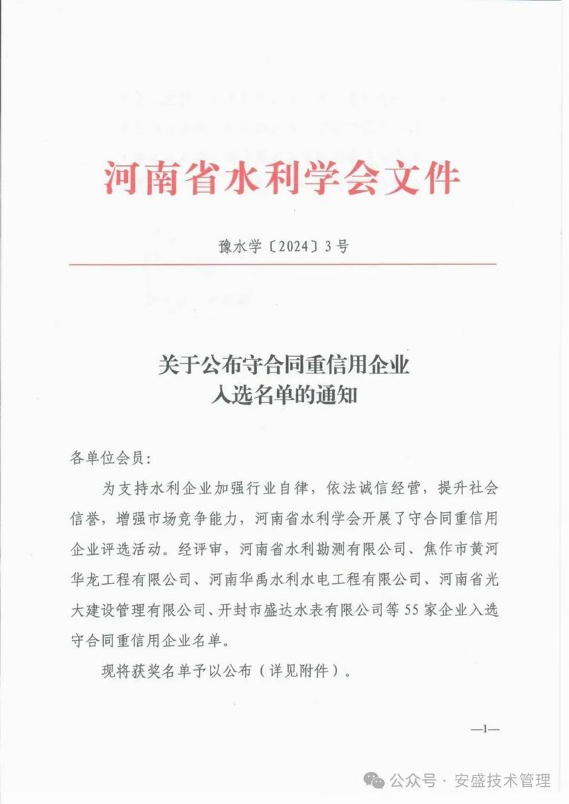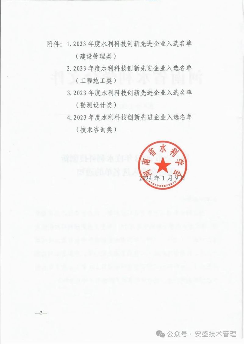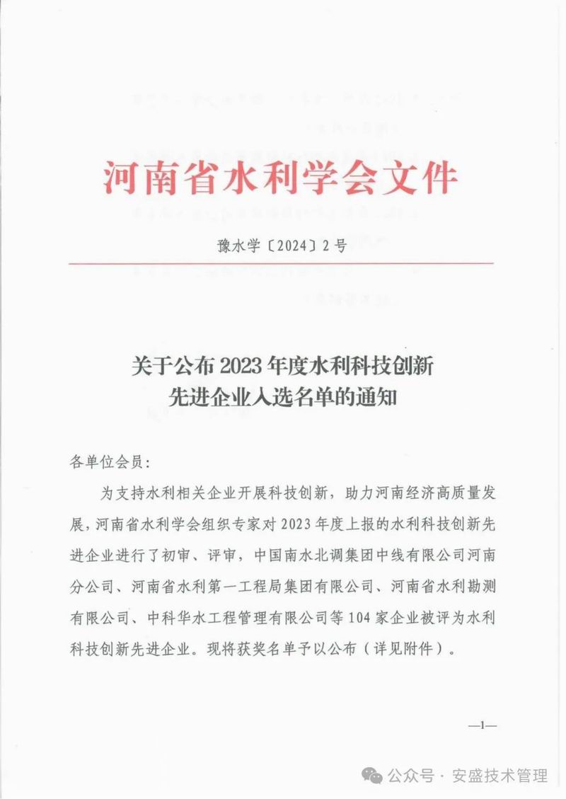 喜報|熱烈祝賀我司入選2023年度水利科技創(chuàng)新先進企業(yè)、守合同重信用企業(yè)